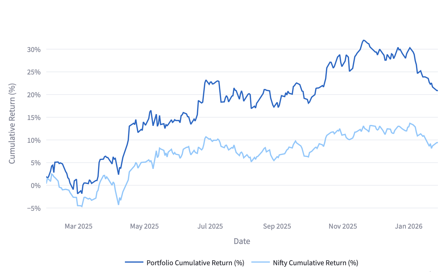 - Benchmark Comparison: Overlay your portfolio against a benchmark (e.g., NIFTY-50) for context.